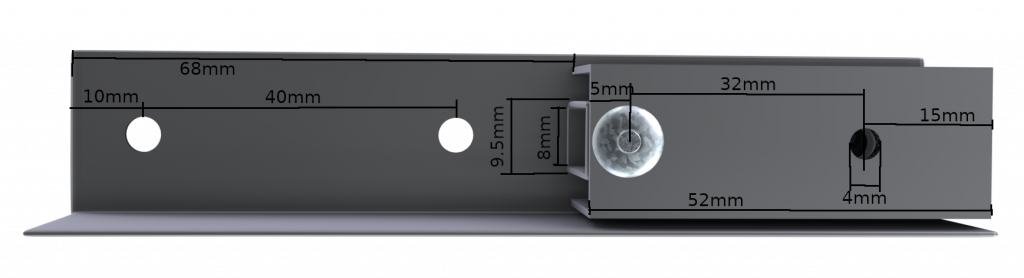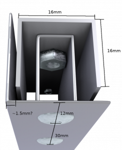 The only tricky piece in the extendable arm, is another U section of aluminum which measures 16mm on the outer edge. This means that the two U sections can fit snugly one within the other and slide lengthways. Such a material is used for the top rail of a sliding door. We found Hillaldam 21A to be perfect for this.