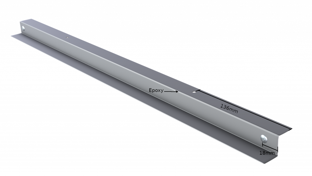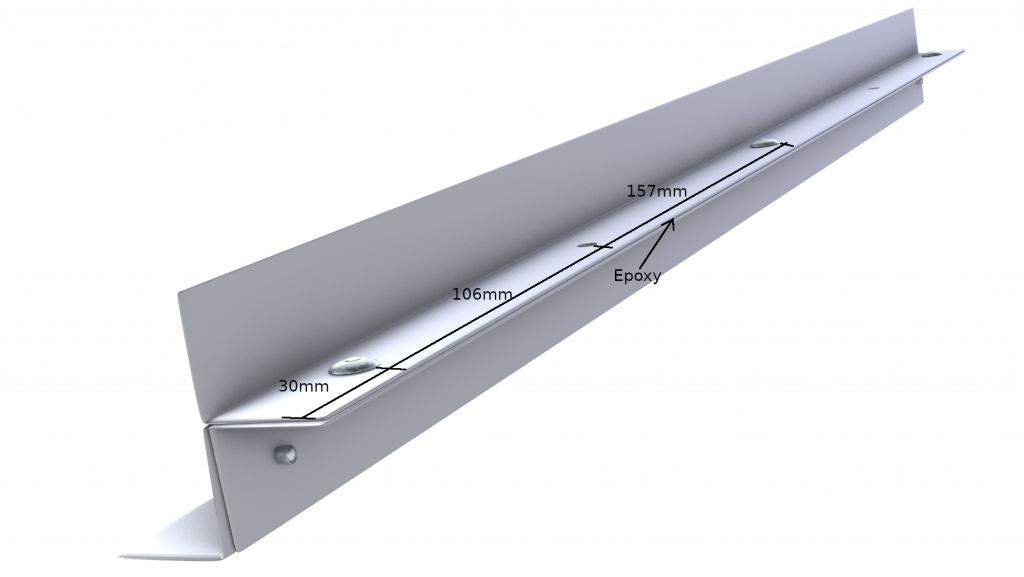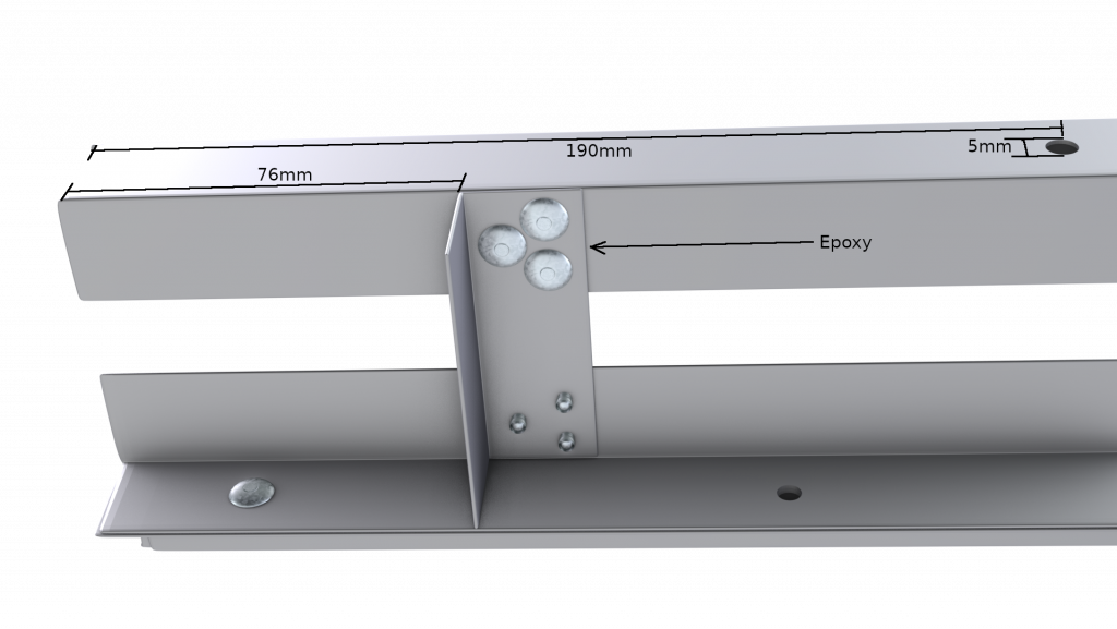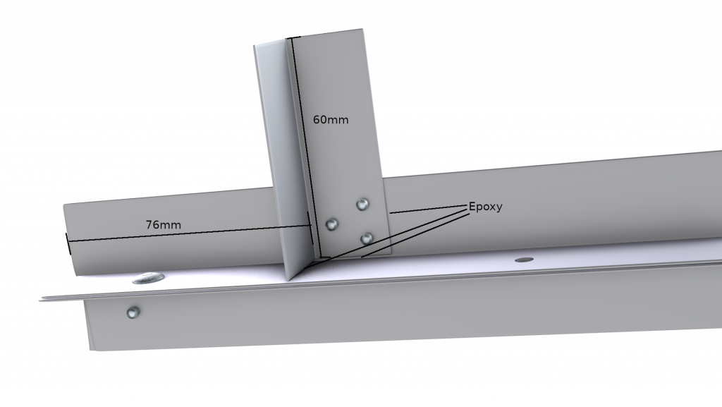 Having connected all three sections, we need two shorter 60mm equal angle sections of the same material, which we will use to make two short pillars. Again, we use epoxy and rivets to join the pieces. We also use epoxy at the “base” of this pillar to secure the section properly.